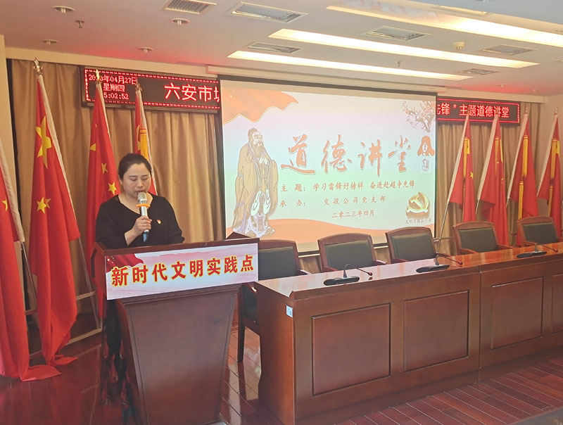 本期道德講堂以“學(xué)習(xí)雷鋒好榜樣 奮進趕超爭先鋒”為主題,活動圍繞唱歌曲、看短片、誦經(jīng)典、講故事、談感悟、做點評、送吉祥等七個環(huán)節(jié)展開。活動在齊唱歌曲《學(xué)習(xí)雷鋒好榜樣》中拉開序幕。在看短片環(huán)節(jié),與會人員共同觀看了《習(xí)近平講述的故事:雷鋒,永恒的精神坐標》;在誦經(jīng)典環(huán)節(jié),集團綜合管理部員工李立朗誦了《雷鋒同志經(jīng)典語錄》;在講故事環(huán)節(jié),邀請了金寨縣希望公益服務(wù)中心理事長、全國共青團十八大代表、“中國好人”、安徽省“五四”青年獎?wù)芦@得者、安徽省“最美奮斗者”、六安市“道德模范”周玉梅同志來到活動現(xiàn)場,并為大家講述了她“不忘初心,堅守公益助學(xué)16年”的故事;隨后來自城投集團結(jié)對幫扶村金寨縣豹跡巖村婦女主任舒貽鳳同志,為大家講述了紅色美麗鄉(xiāng)村豹跡巖村的故事;在談感悟環(huán)節(jié),多位同志積極發(fā)言暢談了自己的感想體會。